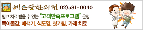 홈페이지 나와있는 "고객만족프로그램"이란 환자분들이 혜은당 한의원에 대한 신뢰를 가지고 치료에 적극적으로 임하실 수 있도록 만든 환자분과의 약속입니다. 낫지 않는 환자분들에 대해서도 일정부분 책임지겠다는 의도로 만든 프로그램이니 참조하시기 바랍니다.