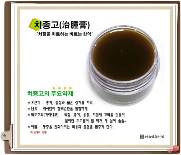 2. 보조요법(치종고 등)들도 자가적으로 집에서 치료 가능하시며, 따로 시간을 내셔 서 한의원에서 치료받지 않으셔도 됩니다.